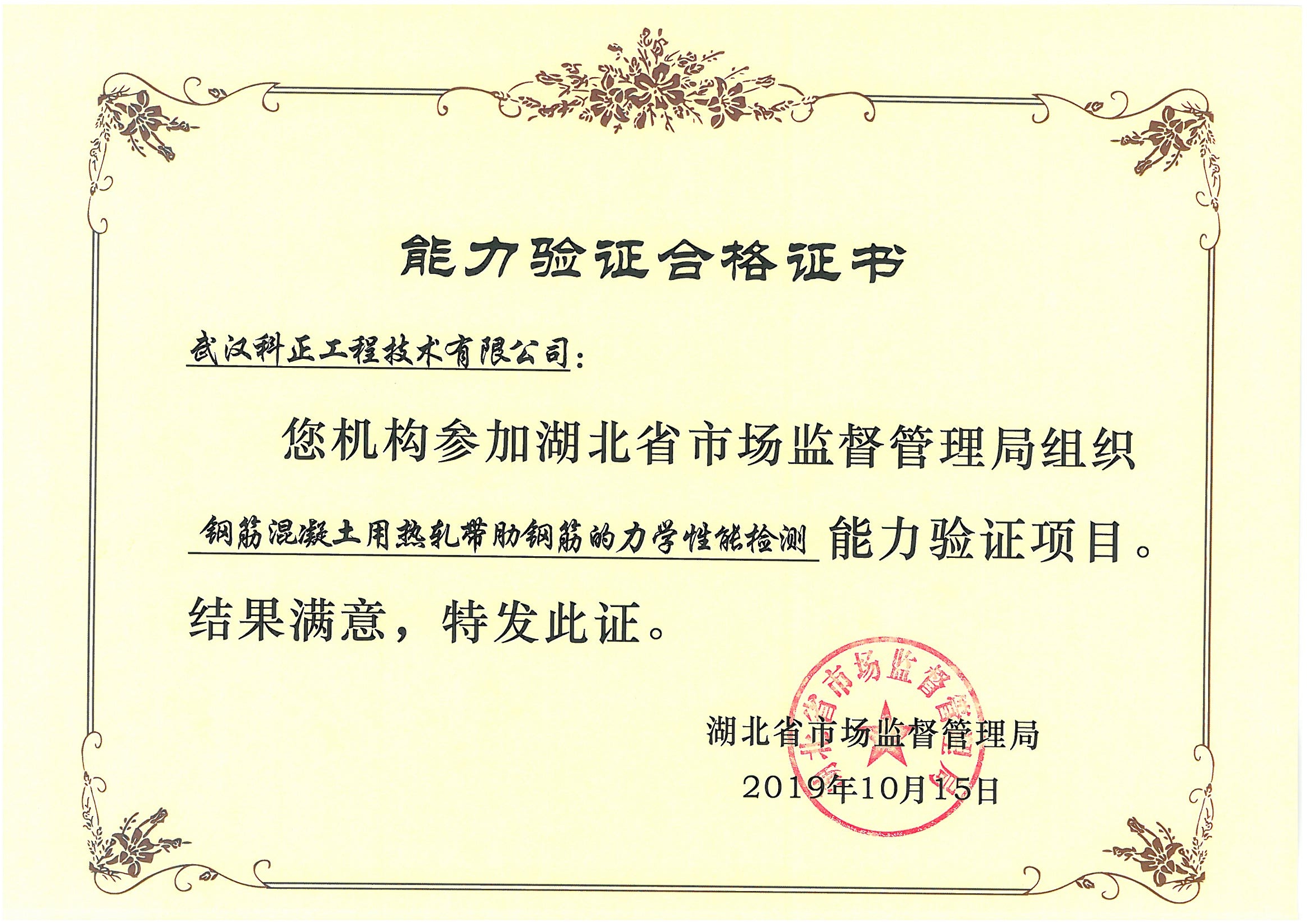 鋼筋混凝土用熱軋帶肋鋼筋的力學性能檢測-能力合格證書