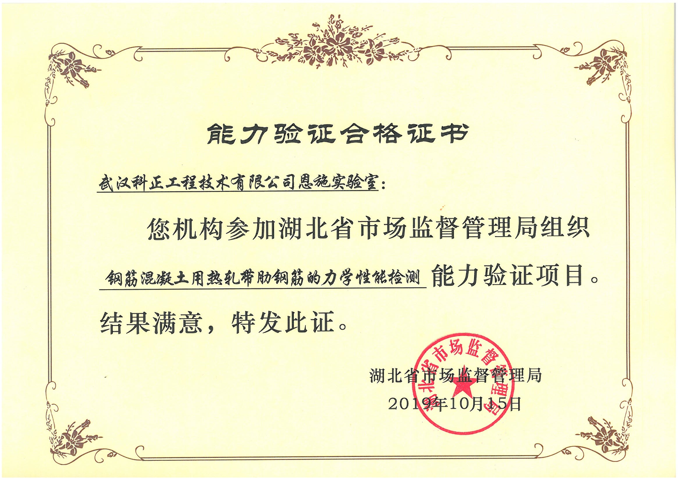 恩施實驗室鋼筋混凝土能力合格證書